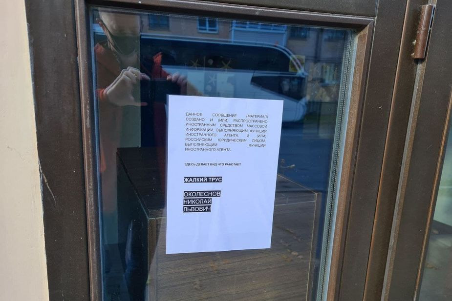 - Сегодня повесил на дверях местного Министерства юстиции маркировку, которая на удивление подходит главе этого самого Минюста Николаю Околеснову, - прокомментировал происходящее в беседе с «7х7» Владимир Жилинский*. - Неделю назад я как физлицо, выполняющее функции физлица, публично вызвал на диалог этого храброго представителя ведомства, «признавшего» меня «средством массовой информации, выполняющим функции иностранного агента». Хотелось задать вопрос, что означает эта галиматья, на каких основаниях она мне предписана и чего им вообще от меня надо. Представитель Минюста позволил себе, или ему позволило руководство, поступить максимально трусливо - промолчать.