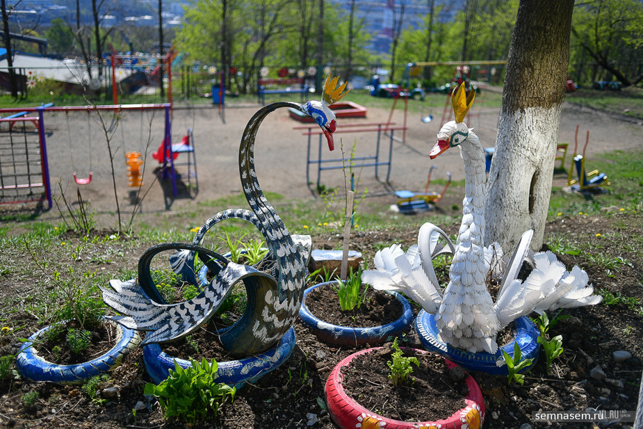 "As a child, I did not understand why flowers must have necessarily grown inside a tire cover and why there were so many plastic bottles around. People managed to make palm trees, pigs, lilies-of-the-valley, birdhouses and much more out of them. Basins and canisters were used, and stumps had to have eyes. So, I did not accept ZhEK art and shuddered when my grandmother was begging my grandfather to come to his senses and make a swan out of a tire by all the countryside canons," said Anastasia Flegontova, one of the project’s authors.