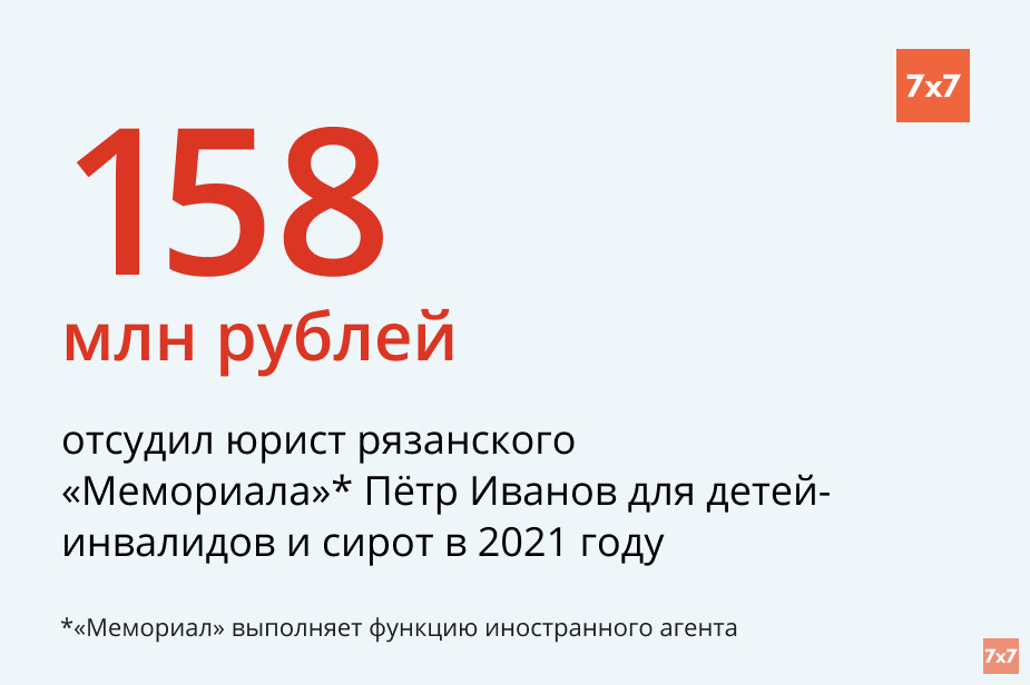 Юрист рязанского «Мемориала»* Петр Иванов помог отсудить около 158 млн руб. для детей-инвалидов и сирот. В эту сумму вошли дорогостоящие препараты, предназначенные для людей с инвалидностью, и квартиры для выпускников детдомов. Об этом Иванов сообщил на своей странице в соцсети «ВКонтакте».