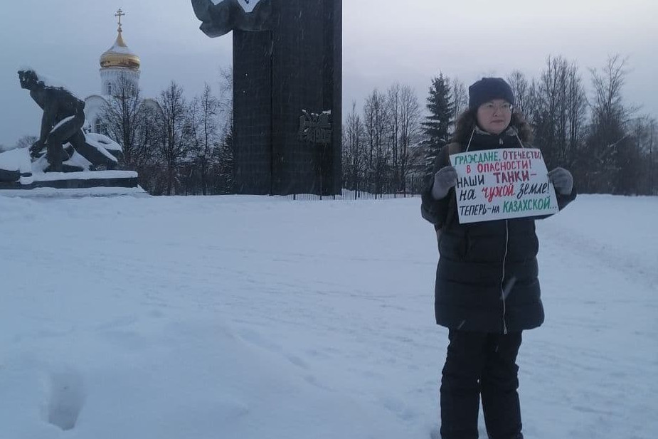 Активистка из Ивановской области Ольга Назаренко встала в одиночный пикет против подавления протестов в Казахстане российскими войсками. Общественники «Бессрочки Иванова» расклеили по всему городу листовки с надписью «Зачем нашим солдатам убивать и умирать на казахской земле?». Ранее российские власти направили в Казахстан ивановских десантников из состава миротворческих сил ОДКБ. Об акциях корреспонденту «7х7» сообщила Ольга Назаренко.