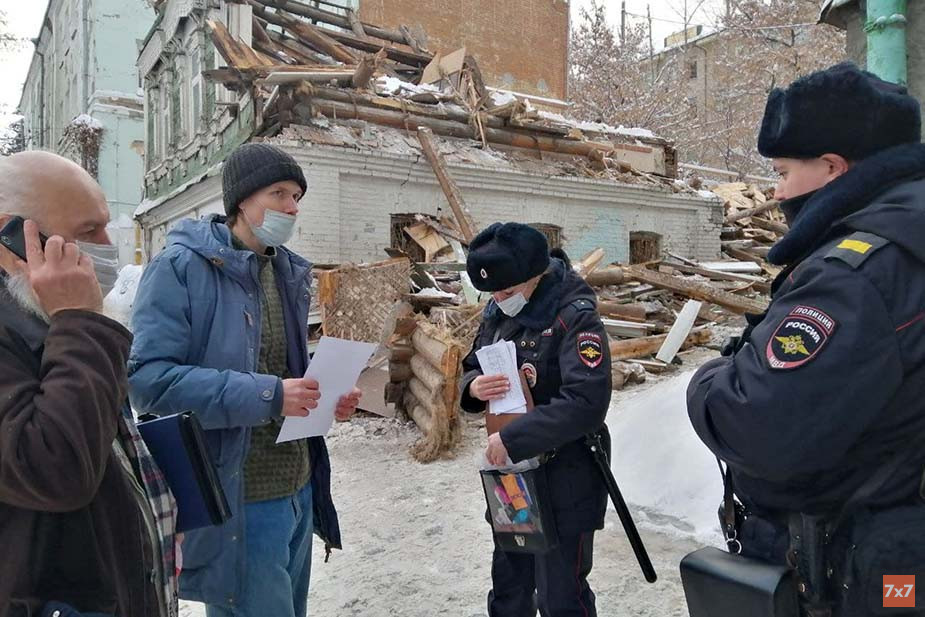 Как сообщил корреспондент «7х7» Евгений Малышев, градозащитники прибыли на место сноса и увидели, что часть старого деревянного дома снесли рабочие. Активисты вызвали полицию и потребовали остановить демонтаж до прибытия правоохранителей. Полицейские взяли объяснения с рабочих, градозащитников и собственника.