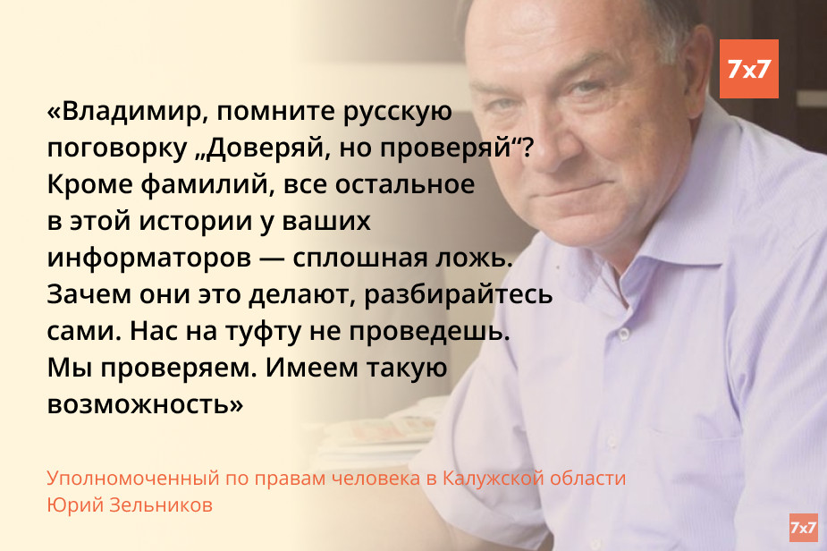 Уполномоченный по правам человека в Калужской области Юрий Зельников назвал информацию Gulagu.net о пытках заключенного в исправительной колонии №3 ложью и «туфтой». Об этом он написал в комментариях к посту на Facebook. Ранее сотрудники ИК-3 обнаружили заключенного мертвым, а Следственный комитет возбудил уголовное дело.