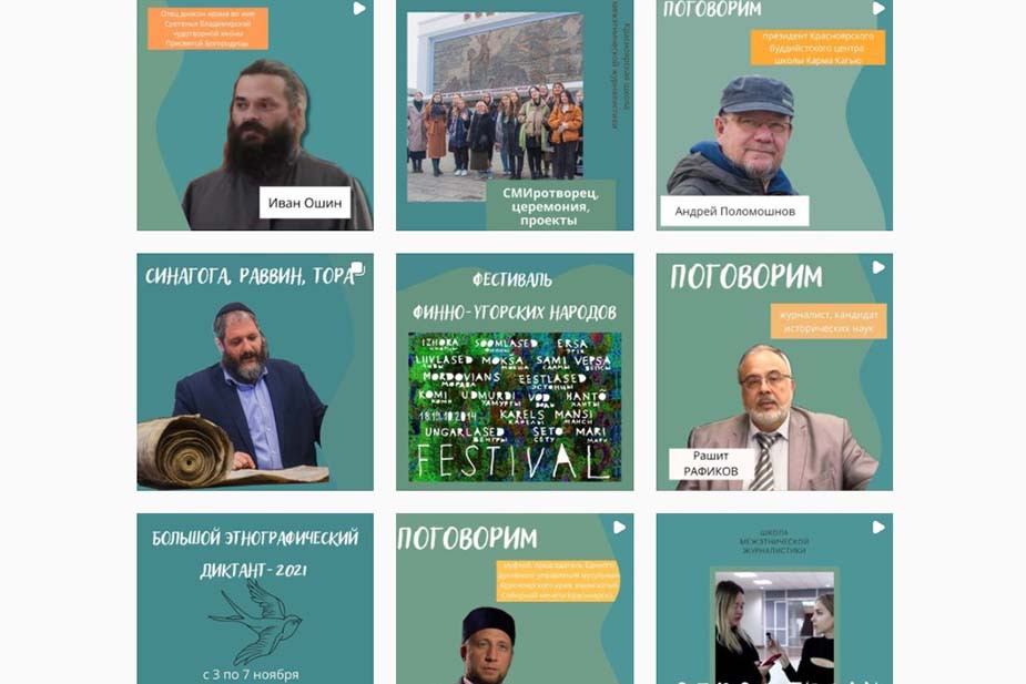 Проект «Межэтно», Красноярск. Школа межэтнической журналистики существует с 2010 года. Ее студенты ездят по экспедициям, снимают национальные праздники и знакомятся с особенностями разных конфессий. Журналисты публикуют работы в Instagram-аккаунте и на телеканале Сибирского федерального университета. Кстати, в школе могут поучаствовать желающие из разных регионов России....