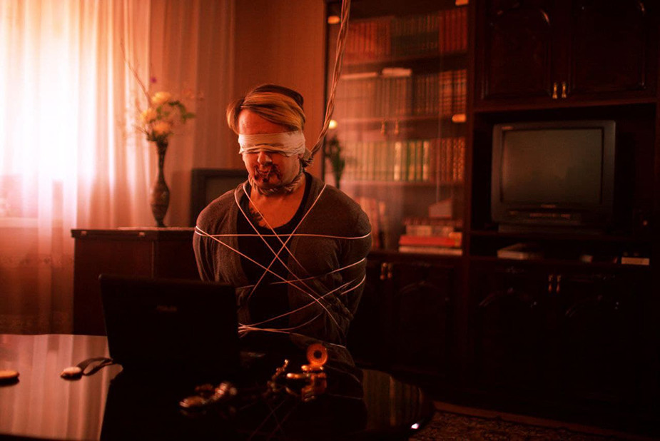 Vladimir Kuznetsov told 7x7 that art should have not been silent in a world where the authorities prohibited free media. In his idea, the character in the photo is caught between the permitted opinions — two televisions in the background. His hands are tied, his mouth is sewn shut, and he is wearing a blindfold. The watch in his hand symbolizes judgment day.
