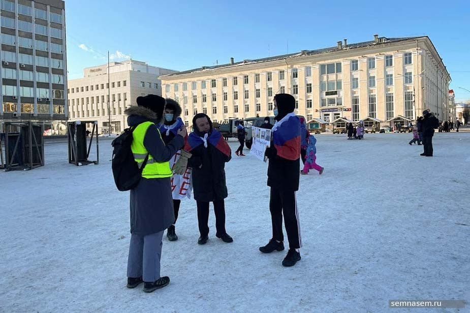 Корреспондент «7х7» в Сыктывкаре рассказал, что на Стефановскую площадь пришли люди с российскими флагами 7 марта. По его словам, они раздавали георгиевские ленточки и «информировали» жителей, чтобы они не паниковали из-за «фейков в интернете». Они негативно высказались о руководителе КПРФ в Госсовете Коми Викторе Воробьёве и издателе «7х7» Леониде Зильберге, которые выступили за мир.