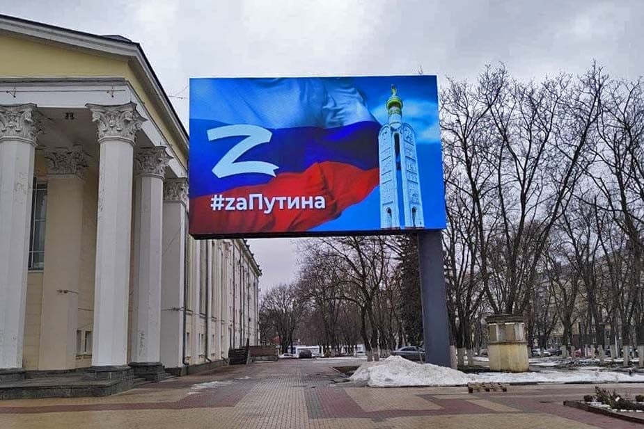 В Белгороде неизвестные повесили плакат с буквой Z (знак «военной спецоперации») на стадионе и разместили на билборде надпись в поддержку действий президента в Украине.