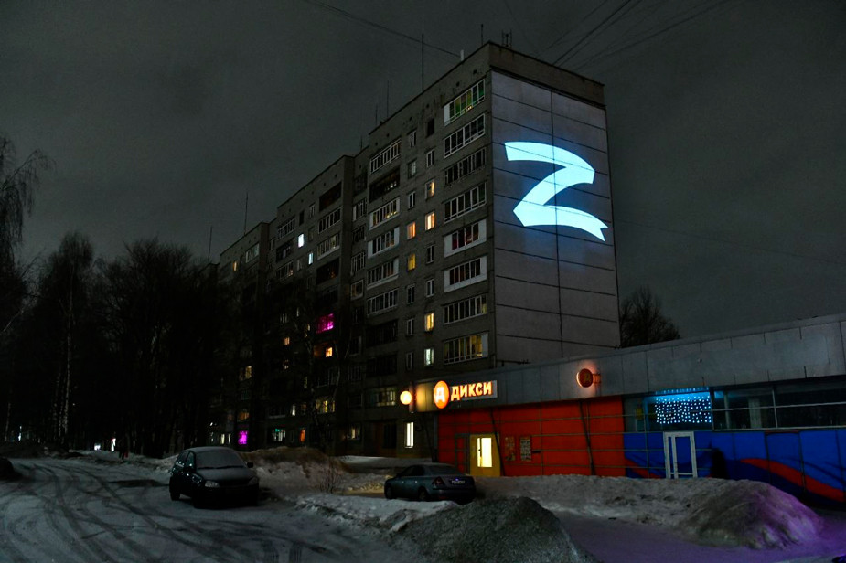 На здании правительства Чувашской Республики появилась надпись в форме буквы Z (знак «военной спецоперации»). Такой же знак появился на здании администрации Архангельской области.