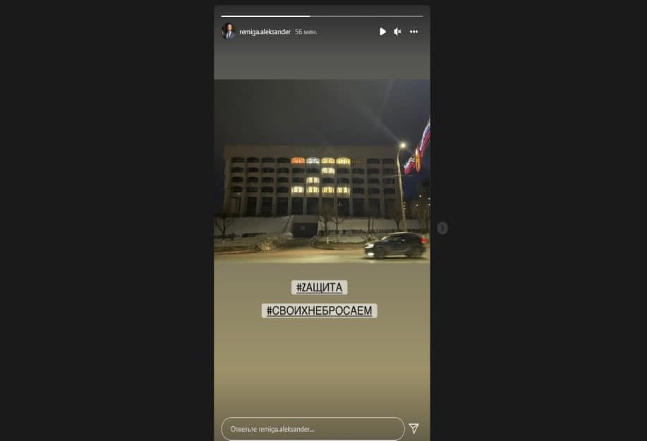 Первый замгубернатора Владимирской области Александр Ремига поддержал «военную спецоперацию» в Украине и выложил букву Z на здании областного правительства в Instagram.