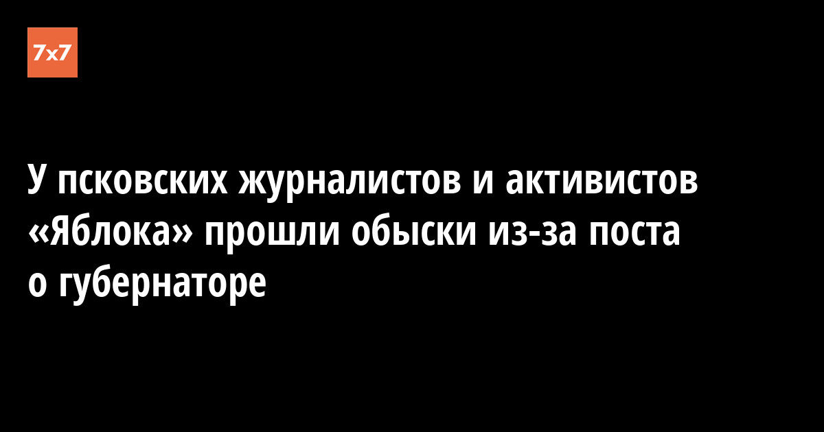 Полицейские провели обыски у активистов из-за публикаций в псковских анонимных Telegram-каналах. Информация в постах якобы содержала «заведомо ложные сведения, порочащие честь и достоинство» губернатора Михаила Ведерникова и подрывала его репутацию (статья 128.1 УК РФ).