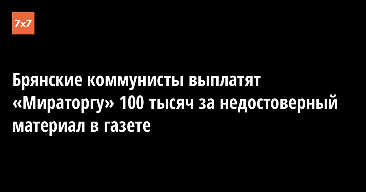 Арбитражный суд Брянской области присудил компании «Мираторг» 100 тыс. руб. компенсации из-за публикации коммунистов. На сайте регионального отделения КПРФ и в газете «Брянская правда» они выпустили материал о протестах жителей села Семцы, которые выступили против строительства свинокомплекса «Мираторга» рядом с их домами. В суде коммунисты признали информацию из текста недостоверной, согласились удалить материал и дать опровержение.