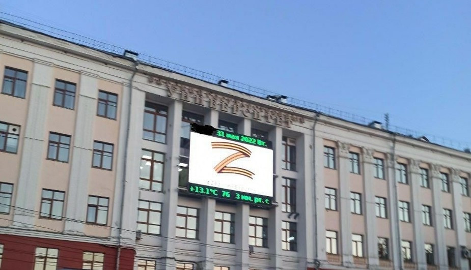 Администрация Кирова послала в ВятГУ письмо и попросила устранить нарушение правил внешнего благоустройства из-за экрана с Z на фасаде вуза. На экран 4 июля в мэрию пожаловались активисты движения «Красивый Киров». В мэрии выявили, что экран установили на архитектурных элементах фасада — колоннах, что считается нарушением.