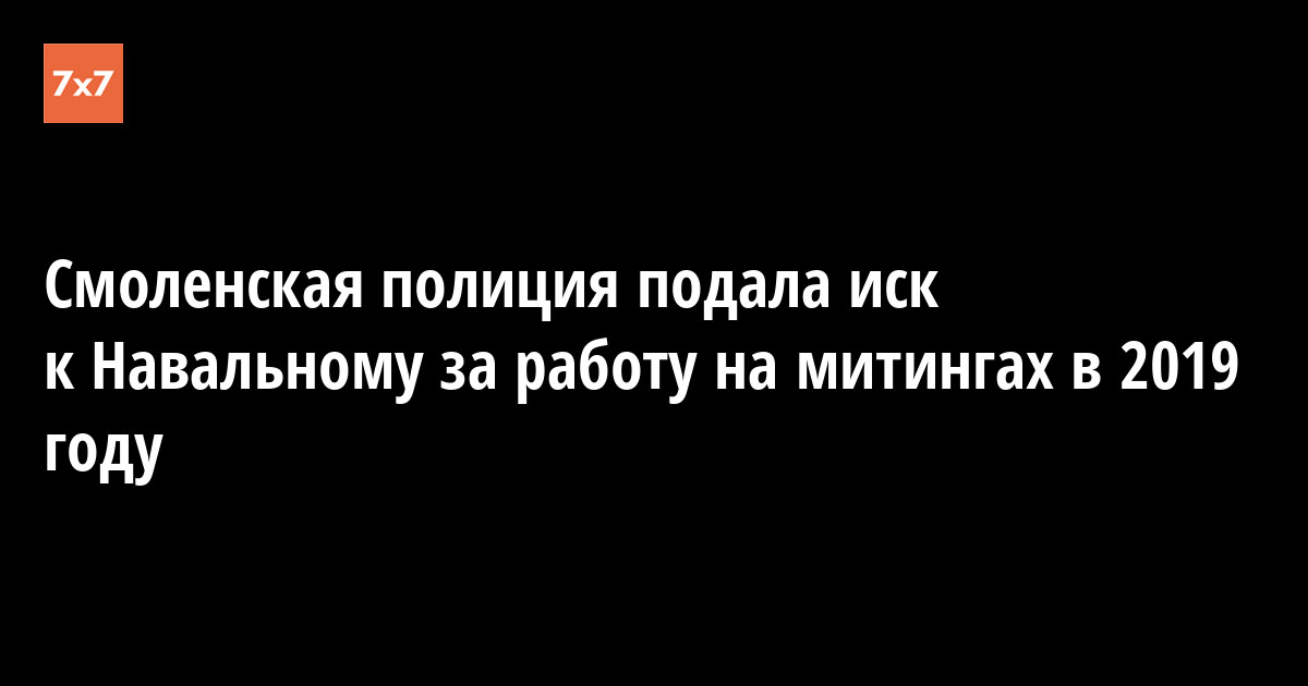Смоленская полиция 13 июля подала иск к политику Алексею Навальному и его соратникам: Любови Соболь, Ивану Жданову, Илье Яшину, Владимиру Милову и Олегу Степанову. По словам политика Ивана Жданова, с них хотят взыскать за бензин для автозаков и сверхурочную работу полицейских на акциях 2019 года. В полиции корреспонденту «7х7» не смогли оперативно подтвердить информацию.