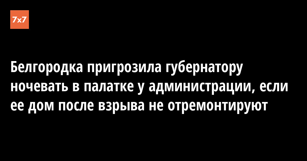 Белгородка пожаловалась губернатору Вячеславу Гладкову на отказ экспертов снести ее поврежденный дом после взрыва 3 июля. В Белгород упали обломки сбитой ракеты, и часть домов пострадала. Горожанка пригрозила ночевать в палатке у администрации, если на ее проблему не обратят внимание. Об этом рассказал глава региона во время прямого эфира в соцсети «ВКонтакте».