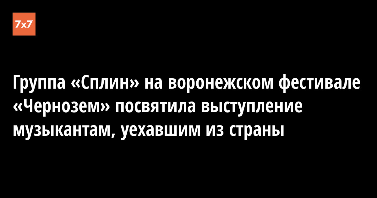 20 августа на фестивале «Чернозем» в Воронеже лидер группы «Сплин» со сцены заявил, что посвящает песню тем артистам, которые уехали из России. Трансляция в соцсети «ВКонтакте» оборвалась, а в городских пабликах Воронежа начали появляться посты с критикой музыканта. Об этом «7х7» рассказала читательница.
