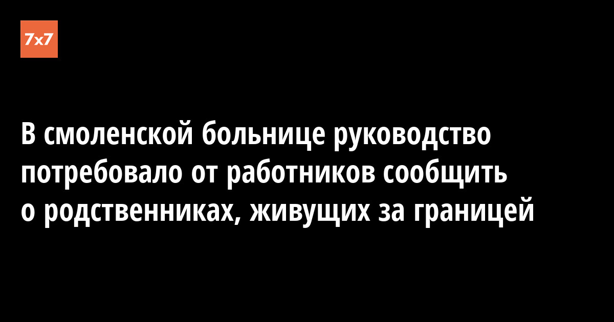 Медицинский работник смоленской больницы рассказал «7х7», что он и его коллеги получили сообщение от администрации больницы с требованием сообщить информацию о втором гражданстве или о родственниках, проживающих за границей. Как рассказал наш источник, сначала он отказывался это делать, но руководство начало угрожать, поэтому пришлось предоставить такую информацию.