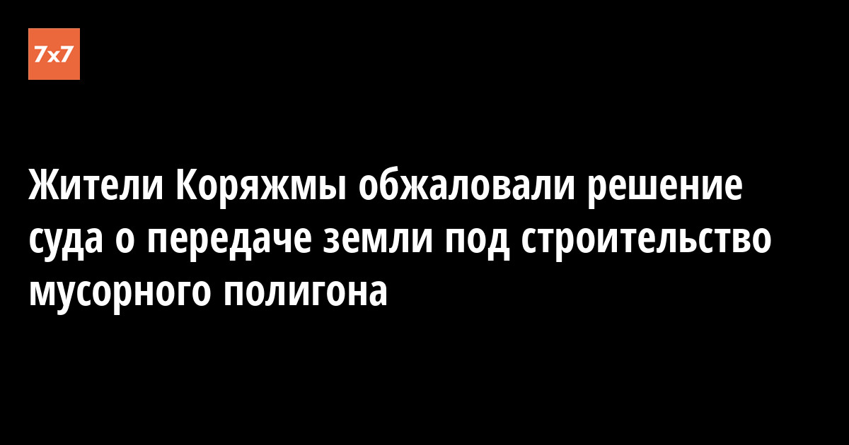 Жители архангельского города Коряжмы подали апелляцию на решение суда о признании передачи земли под строительство мусорного полигона законной. Ранее люди подали в суд на решение депутатов гордумы согласовать этот проект. Жители Коряжмы считают, что этот проект приняли несмотря на то, что на территории города уже есть действующее предприятие. Жители боятся, что полигон будет переполнен мусором. Об обжаловании решения сообщил юрист Александр Козенков в блоге «7х7».