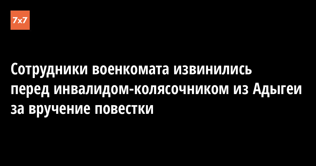 Полицейские и сотрудники военкомата вручили 40-летнему капитану запаса Михаилу Тимошенко повестку 25 сентября и потребовали явиться к назначенному времени в город Адыгейск. Тимошенко — инвалид первой группы, передвигается на коляске из-за травмы на службе.