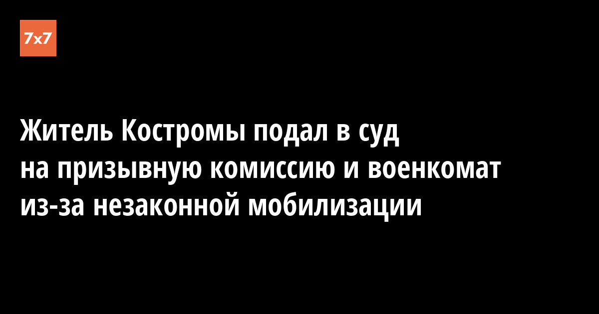 Житель Костромы потребовал признать решение призывной комиссии незаконным. В иске 45-летний мужчина указал, что у него заболевание, а военкомат в мобилизационном предписании неверно указал наименование и код его воинской должности. О подаче иска сообщила пресс-служба Свердловского районного суда Костромы.