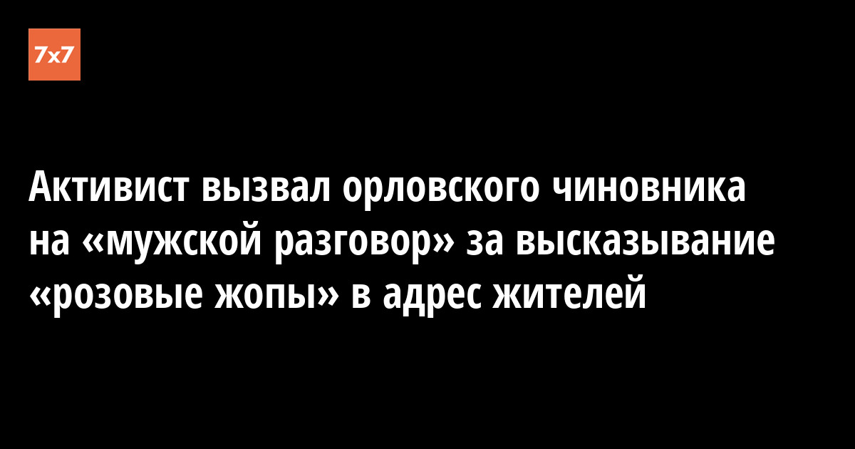 Активист из объединения «Граждане Орла» Годимир Орловский вызвал советника губернатора Орловской области Сергея Лежнева на «мужской разговор». Чиновник назвал жителей «розовыми жопами» за то, что они раскритиковали местные власти за некачественную экипировку у мобилизованных. Обращение к чиновнику Орловский опубликовал у себя на странице в соцсети «ВКонтакте» 15 ноября.