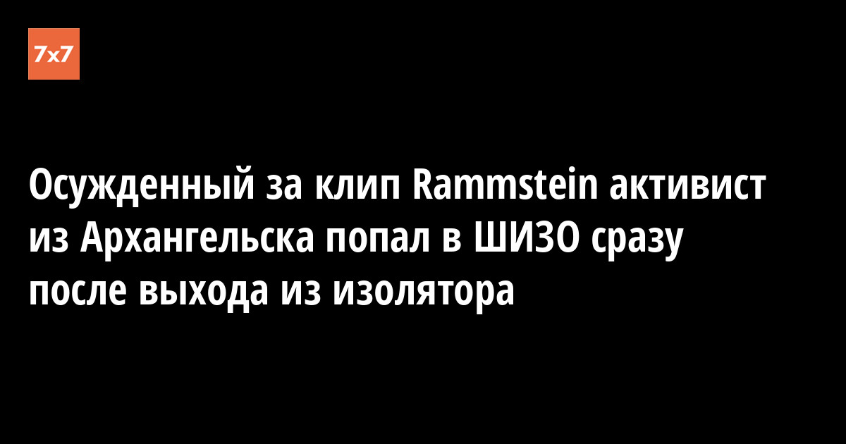 Осужденный за клип Rammstein активист из Архангельска Андрей Боровиков вновь попал в ШИЗО. За что на этот раз — неизвестно. За день до этого, 8 января, Боровиков вышел из изолятора. Туда он попал за найденный при обысках гель для душа в бауле, которого не было в описи. По словам Боровикова, обыск сотрудники колонии проводили без него.
