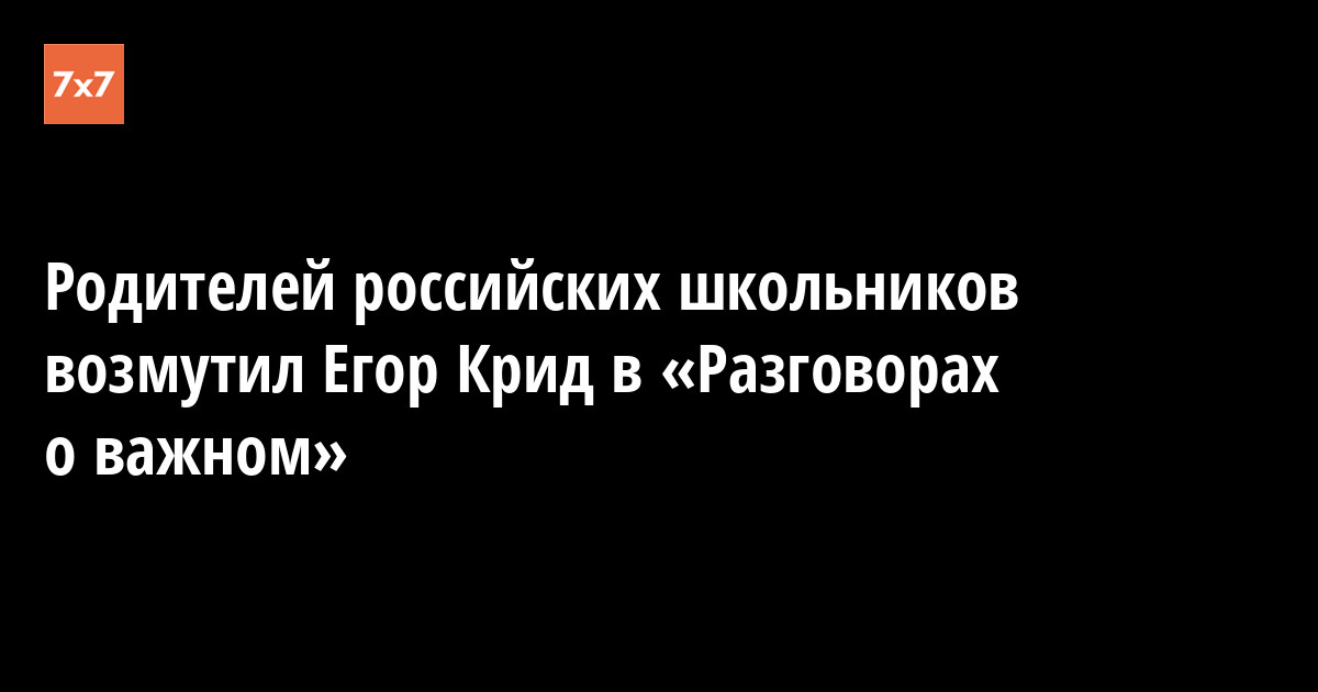 Родителей белгородских, нижегородских и сыктывкарских школьников возмутило появление Егора Крида в «Разговорах о важном» 23 января. Рэпер рекламировал детям свой концерт и телеграм-канал, а также рассказал о кибербезопасности и посоветовал не терять свои деньги в интернете, потому что там «их нужно зарабатывать».