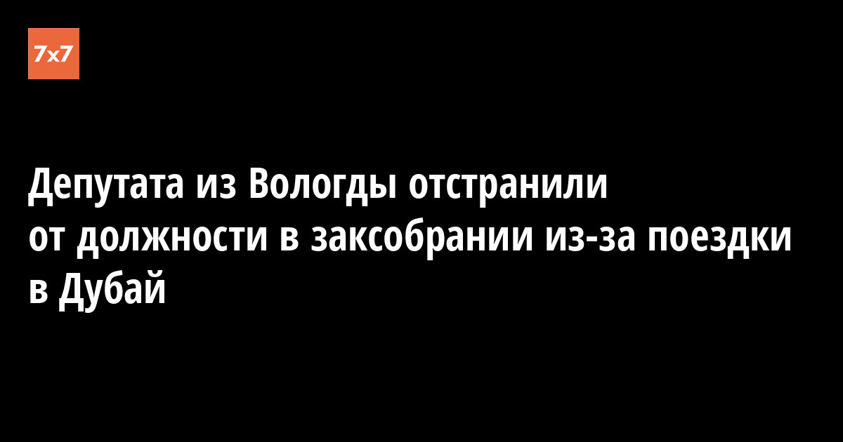 Депутат Денис Долженко лишился должности в заксобрании Вологодской области после публикации фото новогоднего отдыха в Дубае. О решении 25 января сообщило ТАСС.