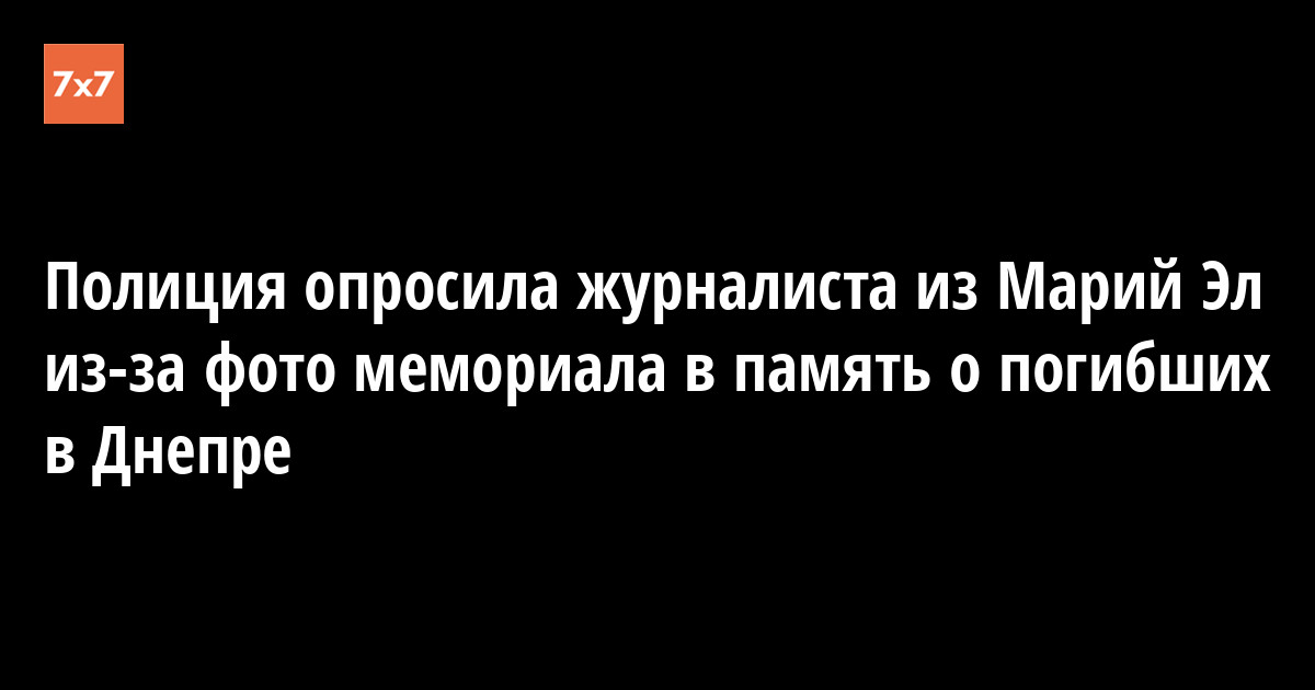 Полиция опросила журналиста из Марий Эл Алексея Серёгина из-за репоста фото мемориала в память о погибших в Днепре. Об этом Серёгин 6 февраля сообщил «7х7».