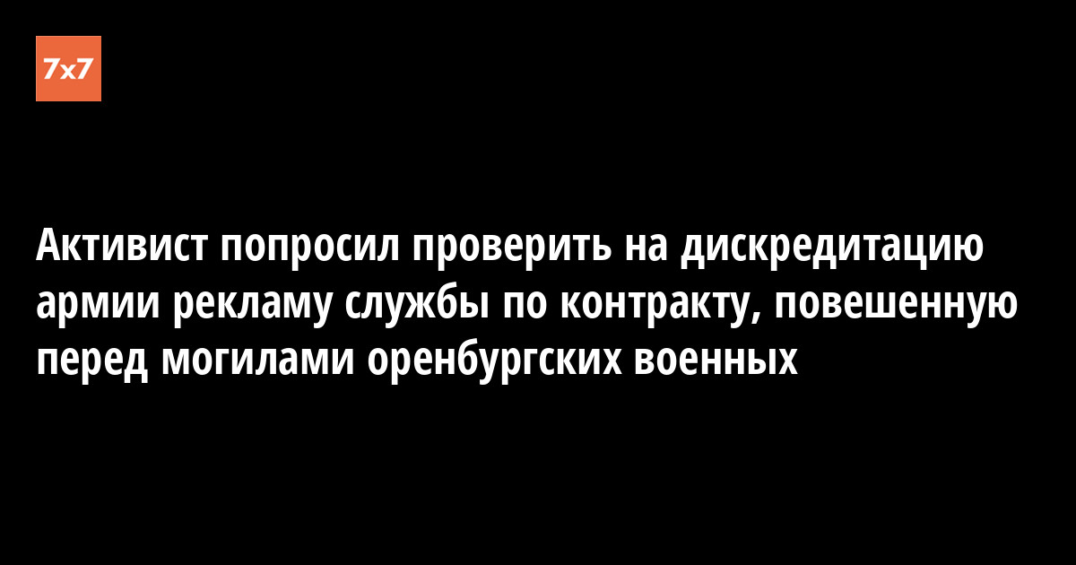 Оренбургский блогер Андрей Лысенко пожаловался в ФСБ на баннер с рекламой службы по контракту, который установили рядом с кладбищем в Бузулуке. Он предположил, что на кладбище есть могилы погибших в Украине военных и сам призыв идти воевать «дискредитирует» армию. В телеграм-канале Lysenok он 11 апреля сообщил, что прокуратура начала проверку по обращению.