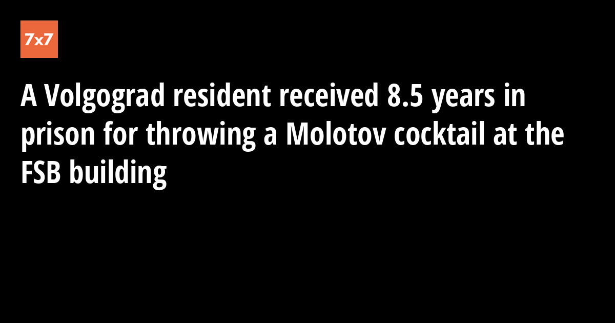 Volgograd resident Igor Paskar has been sentenced to 8.5 years in prison for hurling a Molotov cocktail into the local FSB (Federal Security Service) building, as reported by the Zone of Solidarity human rights project on May 31st.