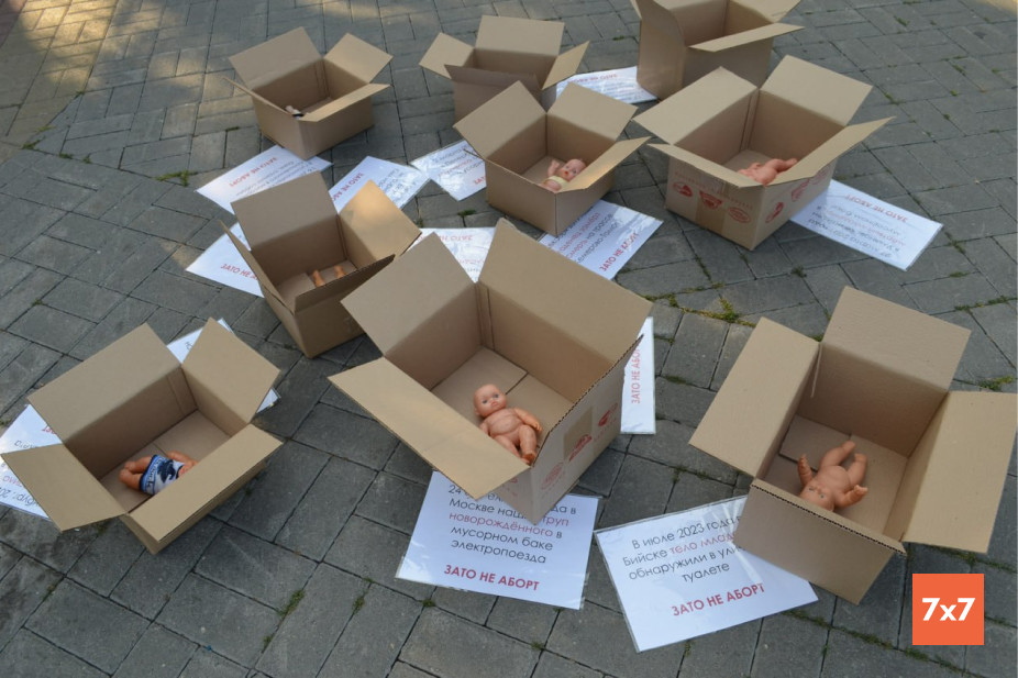 — Цель акции — показать, что запрет абортов не увеличит рождаемость, а повысит статистику по детоубийствам. Если женщинам не удастся искалечить себя посредством подпольного аборта, они найдут другие способы избавиться от нежелательного ребенка, — рассказала одна из активисток «7х7».