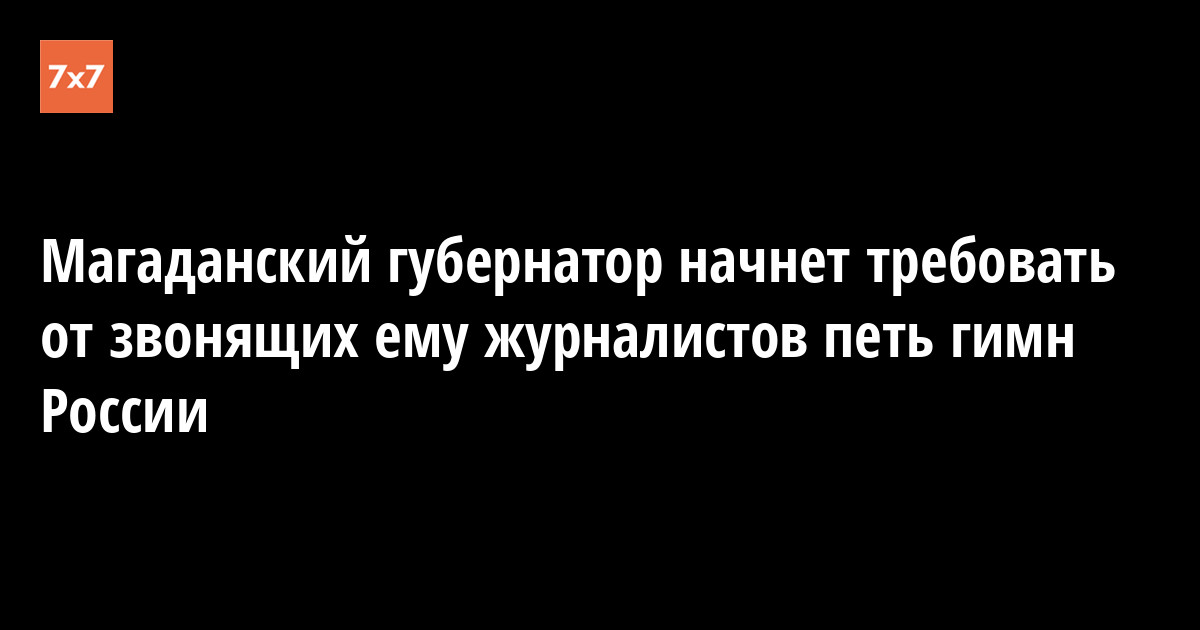 Магаданский губернатор Сергей Носов пообещал требовать от звонящих ему журналистов петь гимн России. Так чиновник отреагировал на розыгрыш команды Навального. Ответ сторонникам оппозиционера глава Магаданской области 16 октября опубликовал в телеграм-канале.