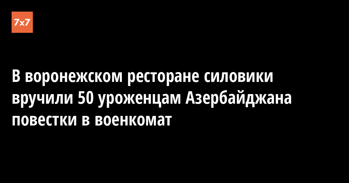 В воронежском ресторане силовики вручили 50 уроженцам Азербайджана повестки в военкомат. Об этом 15 ноября сообщил канал «Вести Воронеж».
