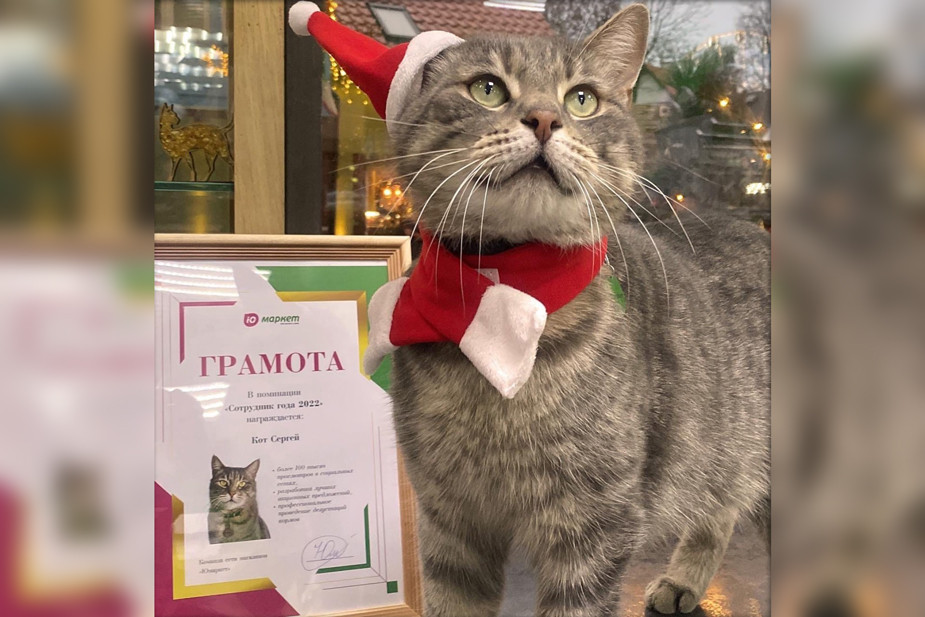 Кот по кличке Сергей жил в магазине «Юмаркет» на Курортном проспекте. Несколько лет назад он прибился в магазин. Сотрудники оборудовали ему лежанку и повесили рядом табличку «Почетный сотрудник».