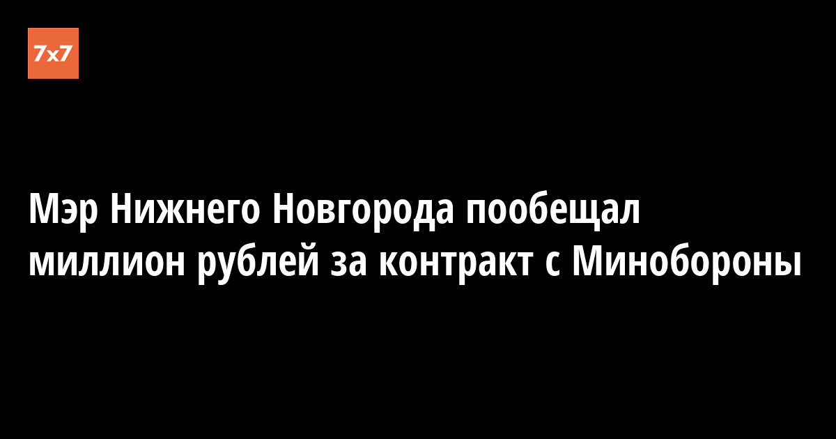 Мэр Нижнего Новгорода пообещал миллион рублей за контракт с Минобороны. Сумма будет выплачиваться из трех бюджетов — городского, областного и Минобороны, сообщил мэр Юрий Шалабаев.