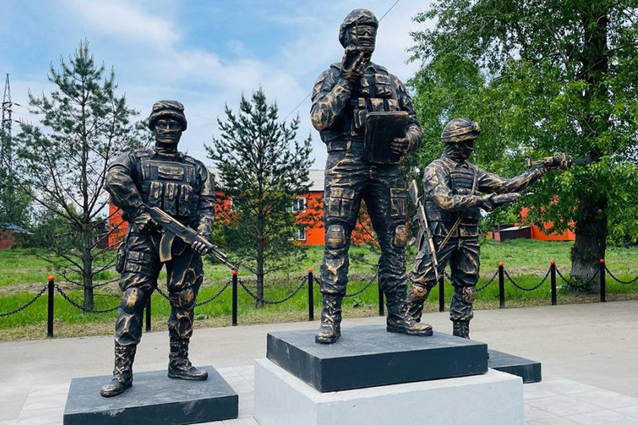 В городе Черемхово появился памятник местным жителям, воевавшим в Украине и погибшим. Там изображены три фигуры — командир боевого расчета, оператор дрона и автоматчик.