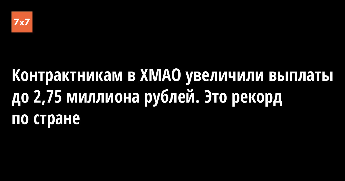 Правительство Ханты-Мансийского автономного округа 4 октября увеличило региональную выплату за заключение контракта с Минобороны на 900 тыс. руб. — до 2,2 млн руб. Это самая высокая выплата в стране, отметили в пресс-службе правительства.