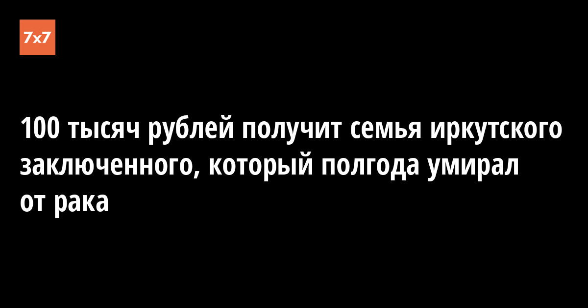Правозащитники добились компенсации в 100 тыс. руб. для семьи иркутского заключенного, который полгода умирал от рака в колонии и похудел до 35 килограммов. Об этом 14 октября сообщил юрист Святослав Хроменков.