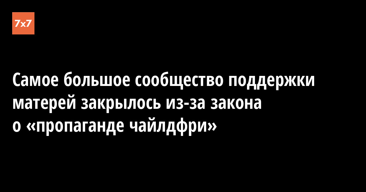 Работу из-за готовящегося закона о «пропаганде чайлдфри» прекратило самое большое сообщество поддержки матерей #щастьематеринства. В середине октября администраторы удалили все посты и закрыли доступ к группе. 24 октября «7х7» обнаружили пост администраторки в дружественной группе #щастьебытьженой.