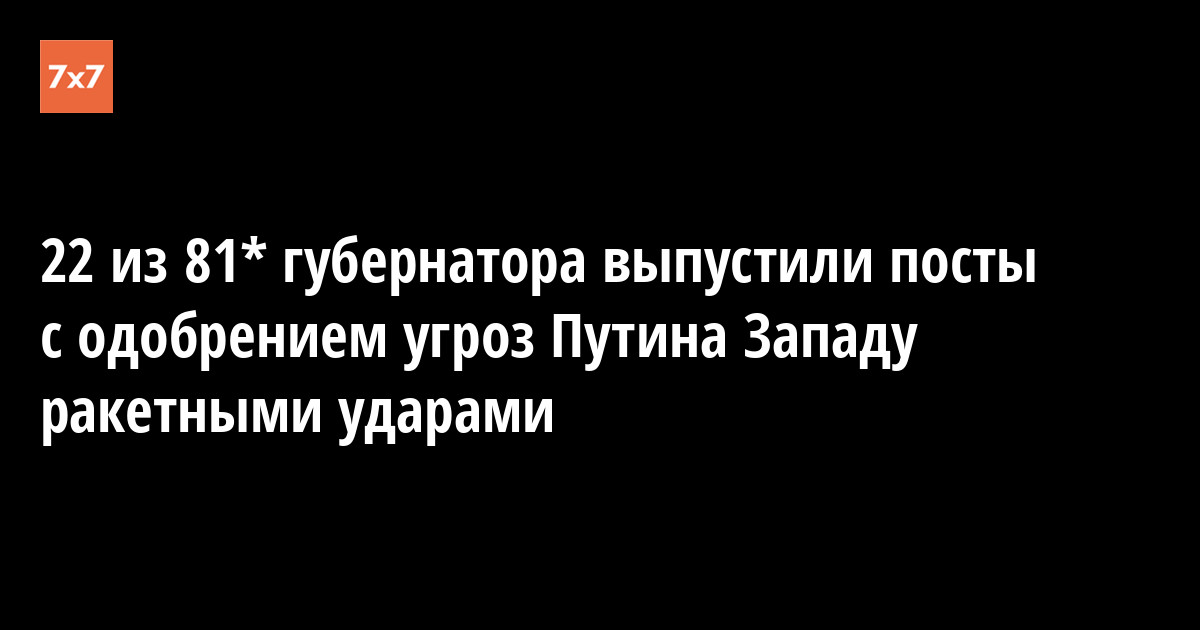 Мы проанализировали телеграм-каналы глав регионов за прошлый вечер и утро 22 ноября. Более трети губернаторов выпустили заявления, связанные с выступлением Путина. Они от имени жителей своих регионов поддержали испытание баллистической ракеты «Орешник» и угрозы бить им по западным странам. Еще 16 губернаторов молча репостнули видеообращение главы государства. Совсем никак публично не отреагировали на выступление Путина 43 губернатора.