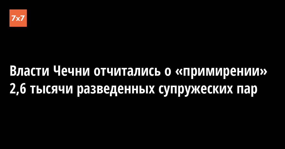 В Чечне за год воссоединили 2,6 тыс. разведенных пар из 5,7 тыс., сообщило 27 ноября провластное издание «Грозный Информ».