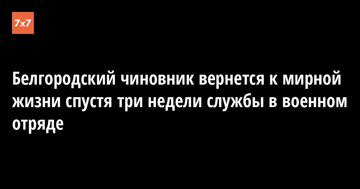 Глава района в Белгородской области решил вернуться к мирной жизни спустя три недели службы в отряде «БАРС-Белгород». Об этом губернатор Вячеслав Гладков сообщил 2 декабря.