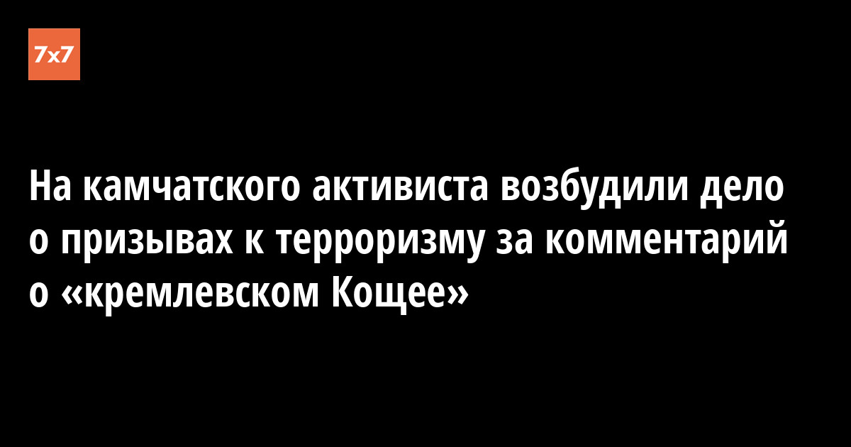 На камчатского активиста Алексея Петрова возбудили дело о призывах к терроризму за комментарий о «кремлевском Кощее». Об этом сообщил телеграм-канал «Камчатская жизнь» 8 января.