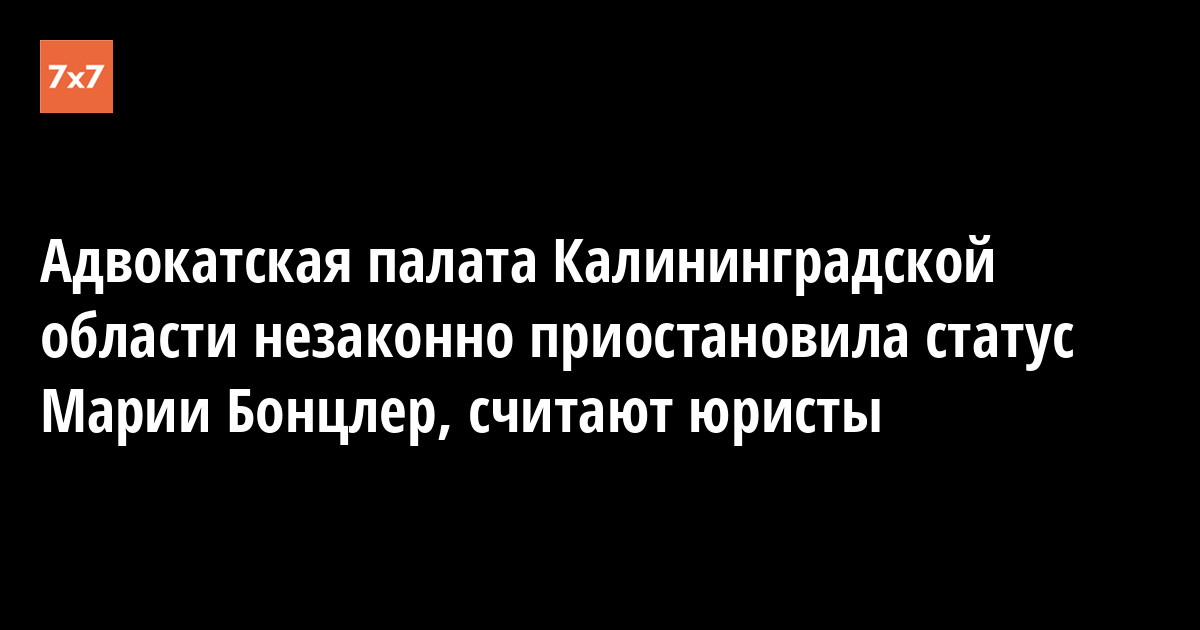 «Ни одно из оснований, перечисленных в статье 16 закона Об адвокатуре, к Марии не применимо. Она не избиралась на госдолжность, не находится в заключении более шести месяцев, не подавала заявление о приостановке статуса. Это нарушение, и мы намерены обжаловать его в суде и попросим Федеральную палату адвокатов отреагировать», — сообщил адвокат Илья Сидоров, защищающий Бонцлер.