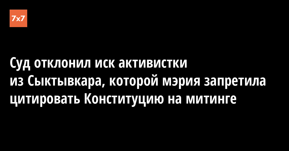 Суд в Сыктывкаре отказался удовлетворить иск активистки Виктории Абаджиевой к городской администрации. Она обратилась в суд из-за того, что мэрия запретила ей цитировать Конституцию на плакатах во время митинга.