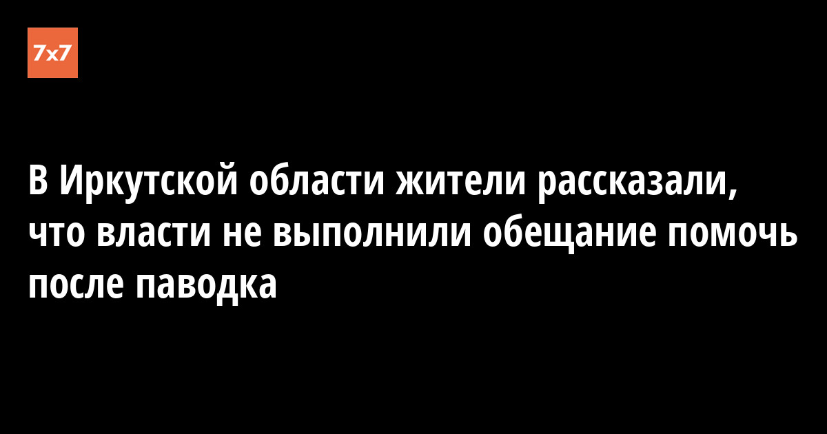 Жительница села Хомутово Иркутской области Сандра Стрелова заявила, что власти не выполнили обещание помочь ее семье после паводка, сообщил «Поток». 1 апреля стало известно, что в селе из-за подтопления под воду ушло около 70 участков. В доме Стреловой затопило полы, септик, скважину и подвал. Администрация Иркутского муниципального округа пообещала установить дренажный насос и привезти песчано-гравийную смесь.