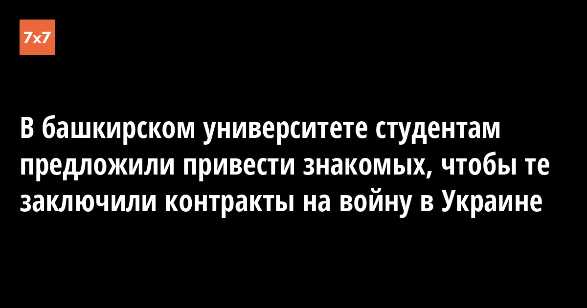 Руководство Уфимского государственного нефтяного технического университета разослало студентам объявление, в котором говорилось, что учащиеся могут привести «друга, брата или другого человека», чтобы он мог заключить контракт на службу в беспилотных войсках сроком на один год. Об этом сообщила «Гроза».