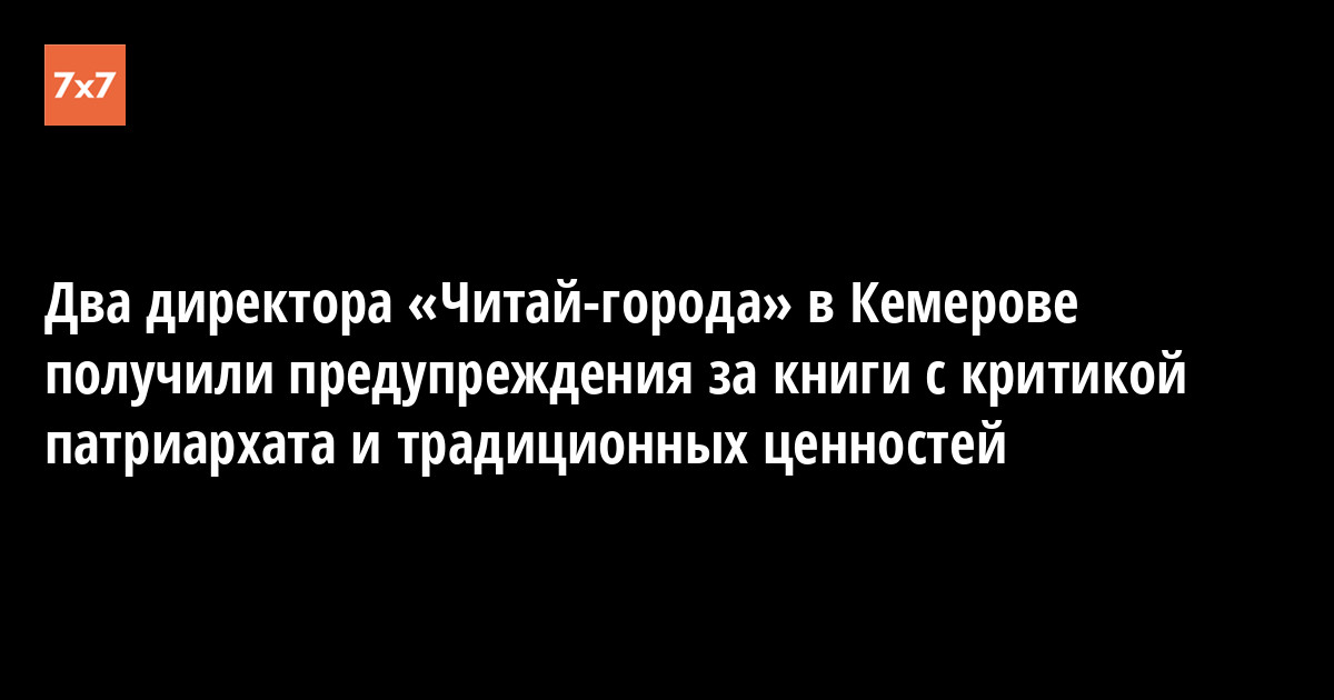 Суды в Кемерове 16 марта и 7 апреля назначили предупреждения директорам магазинов «Читай-город» Олесе Исхаковой и Игорю Тихончуку по делам об «ЛГБТ-пропаганде» (ст. 6.21 КоАП РФ).
